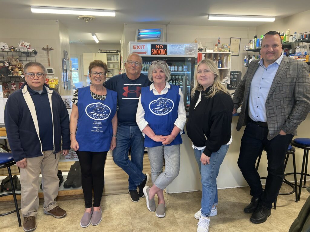 Time was spent with new chaplain Jason Flinn and part-time chaplain Andrew Cooke, a retired Canadian Navy Chaplain. Jason, previously a teacher and now a grief counselor, provided fresh perspectives alongside the seasoned experience of Deacon Art Mitchell, Stella Maris chaplain and recipient of the Peter G. Bernard Award from the International Sailors’ Society Canada, recognizing significant contributions to seafarers’ welfare. It was great to meet also with Kevin Walker who assists NAMMA on research and other key programs.